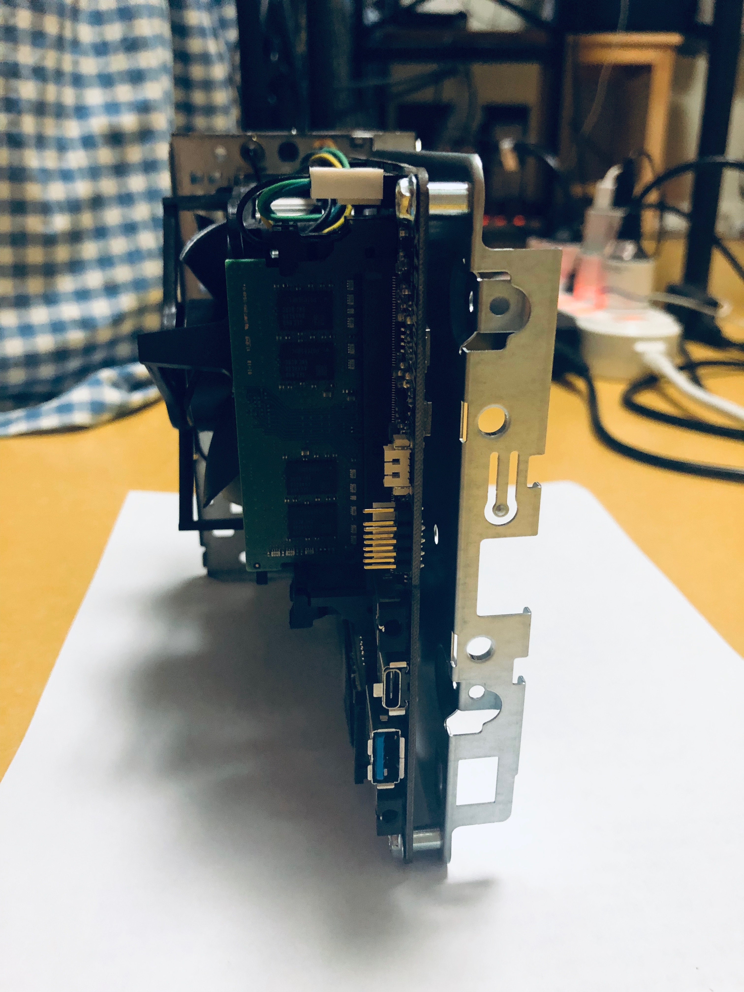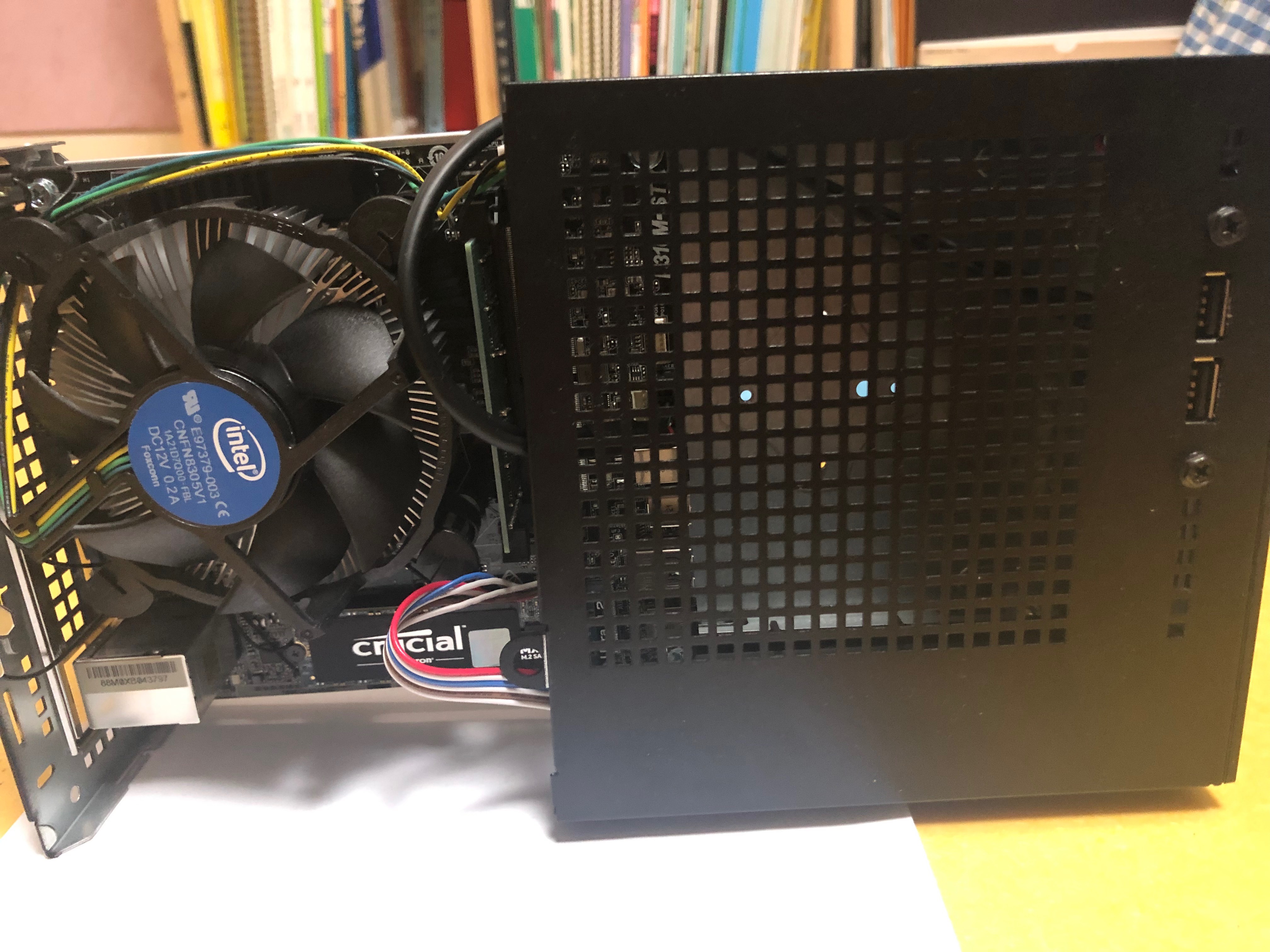 부분적으로 조립된.. 맞다. 내 가산 케이스는 베어본용 케이스로 인텔 커피 레이크용 메인보드 H310이 부착되어있는 모델이다. 그리고 램은 노트북용을 지원한다.
