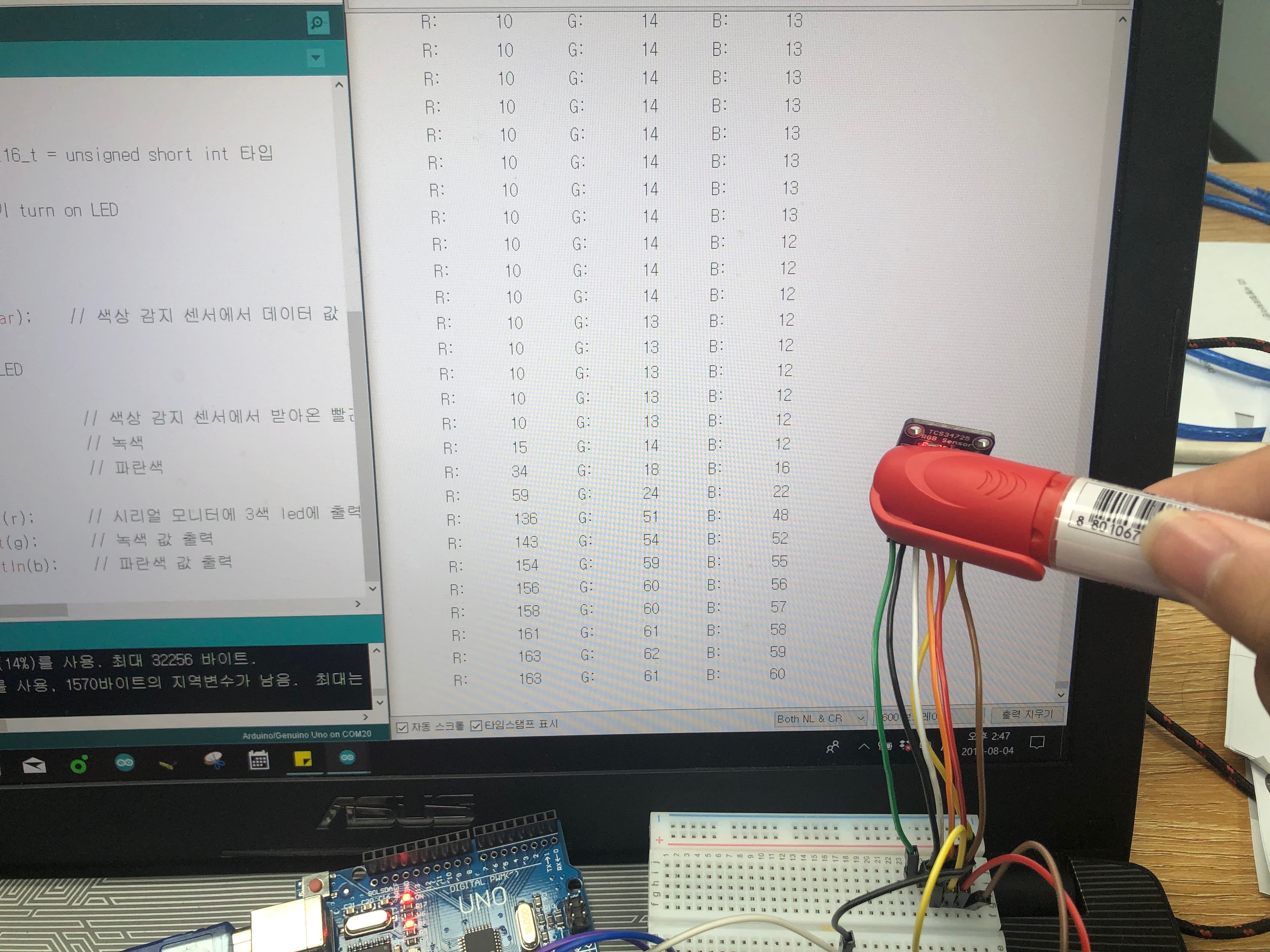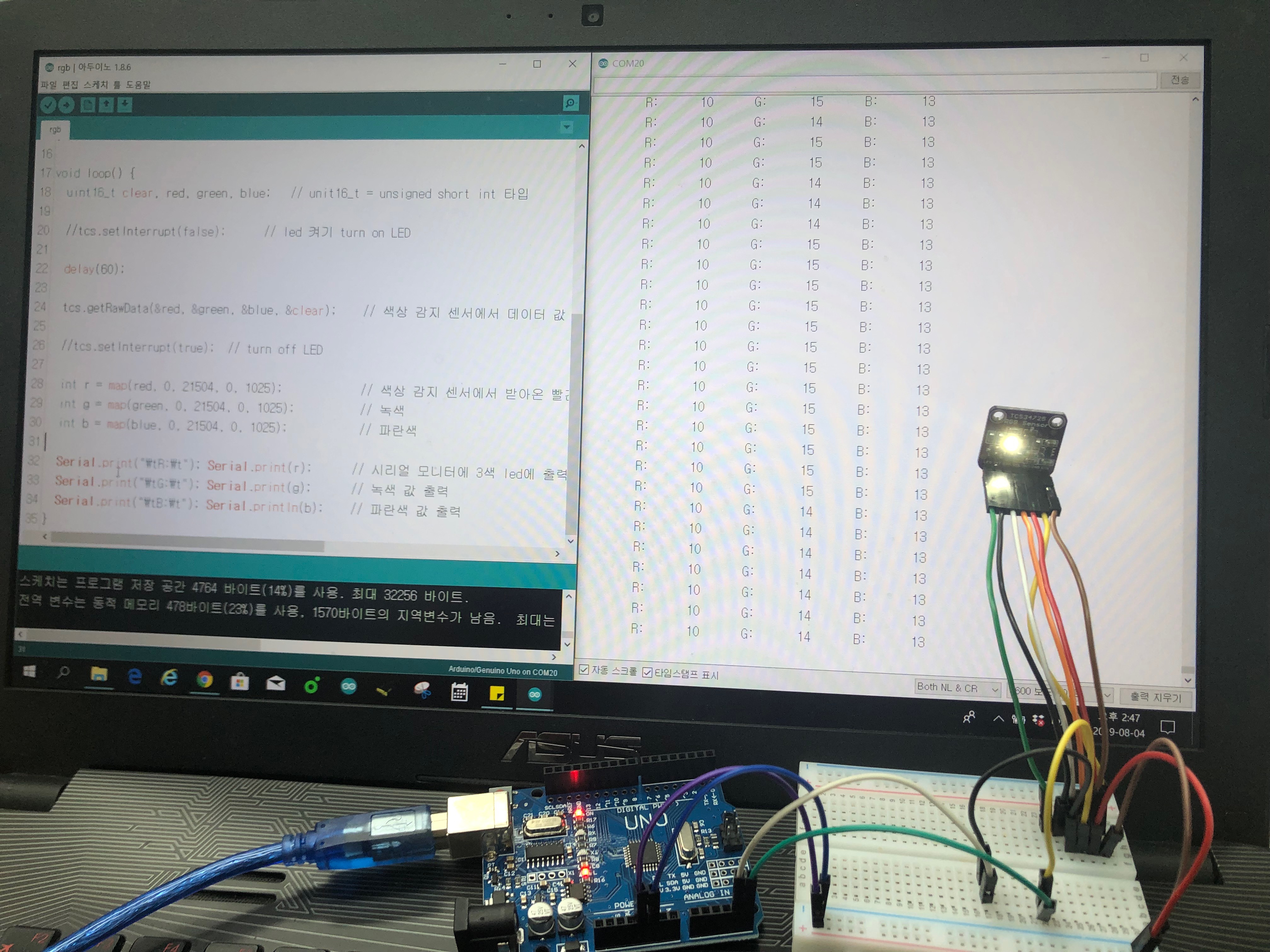 이 센서는 RGB 색상의 정보를 얻어낼 수 있습니다.