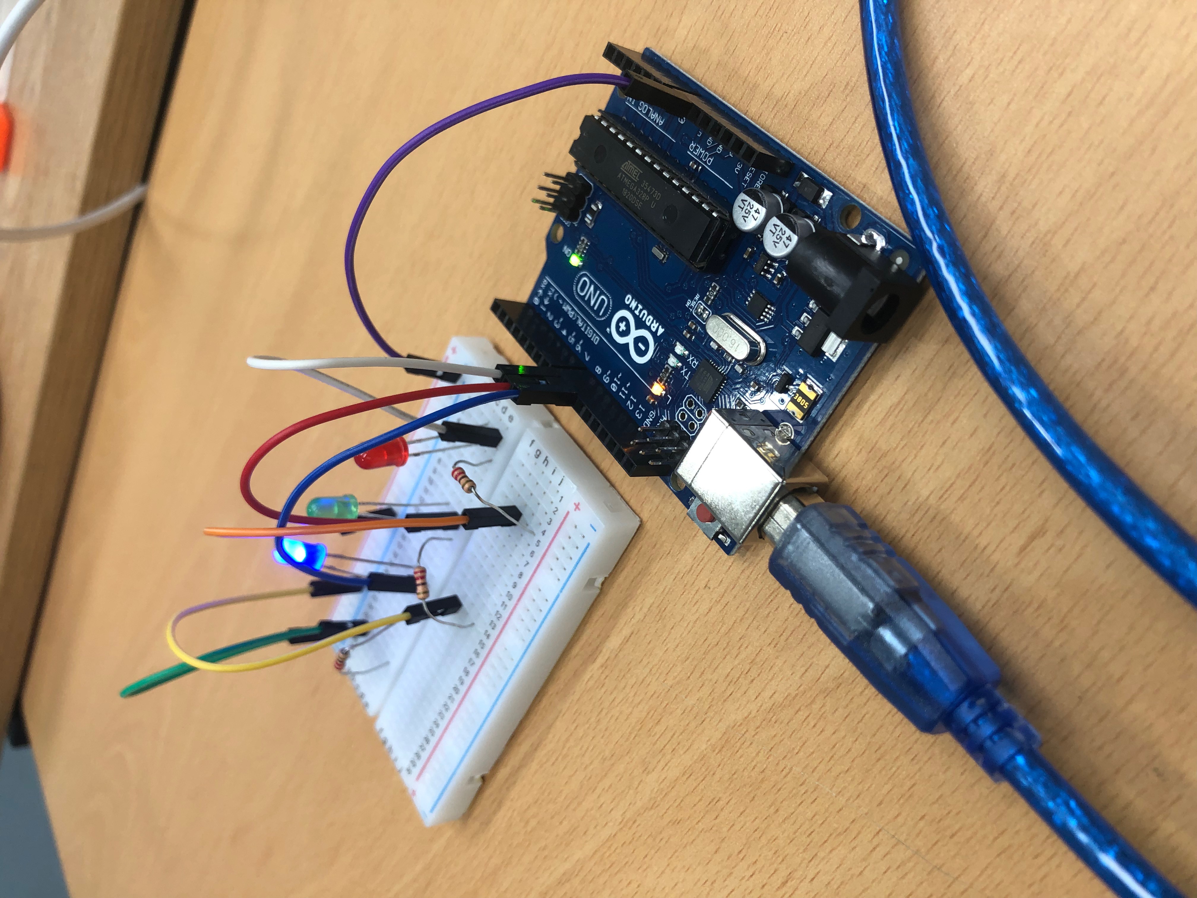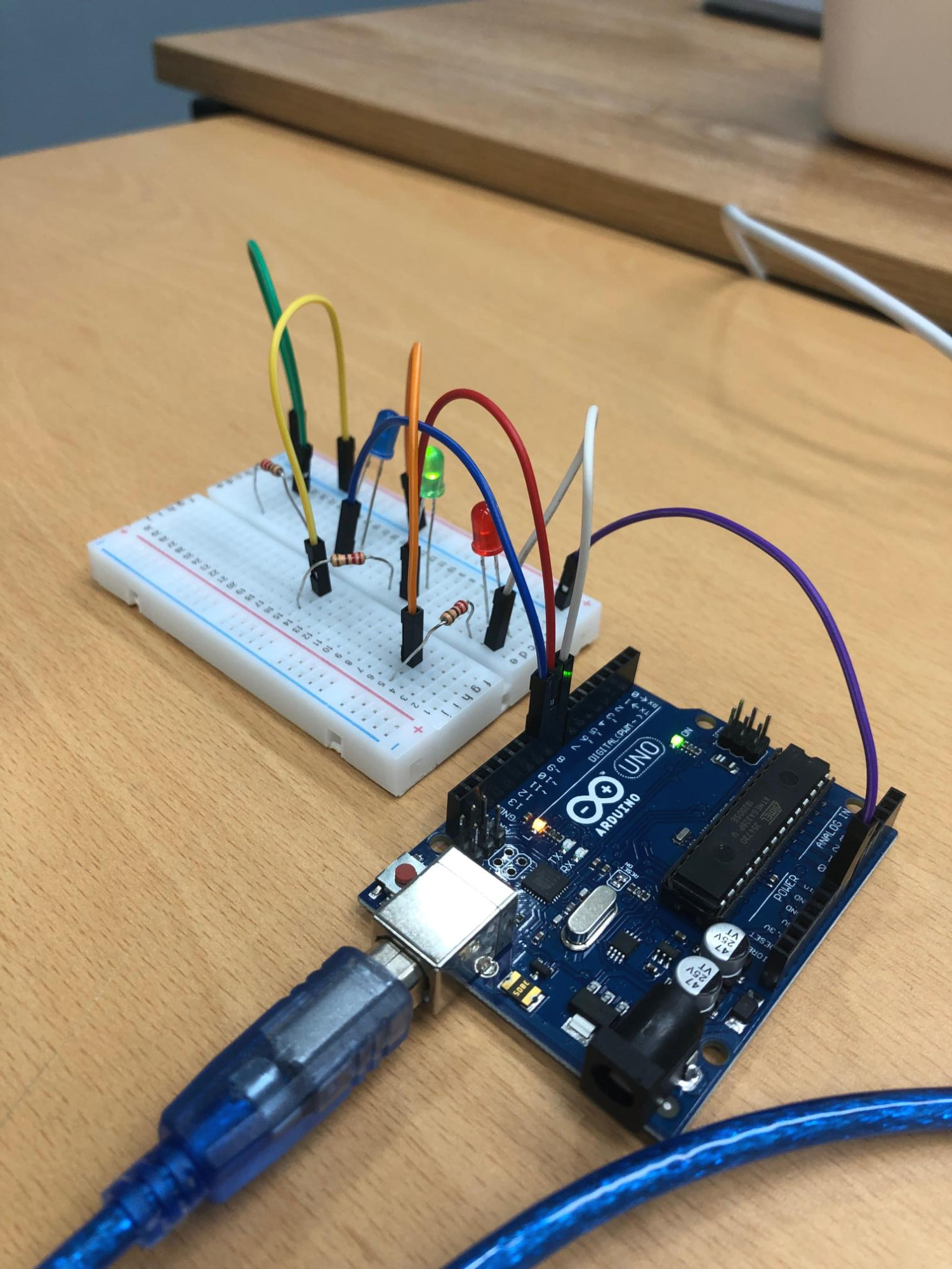 핀모드 8,9,10인 이유는 LED의 +는 아두이노의 디지털 핀 8,9,10에 각각 색별로 LED를 꼽았기 때문이다.