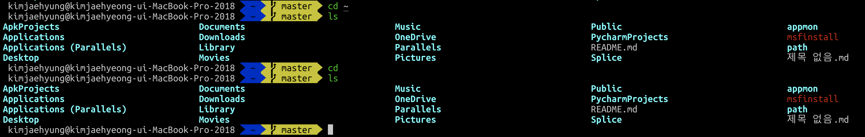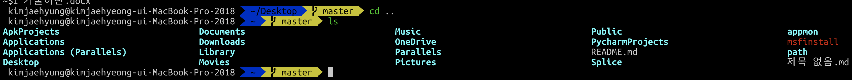 보다시피 홈 디렉토리의 하위 디렉토리로 이동한 것을 볼 수 있다.