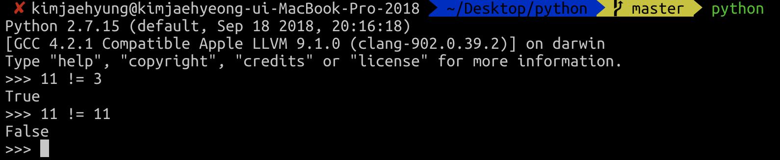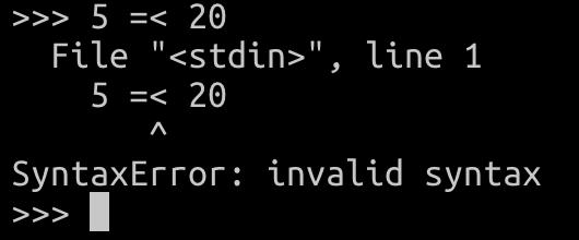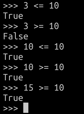 이런 식으로 파이썬은 등호를 부등호 뒤에 붙여서 쓴다.