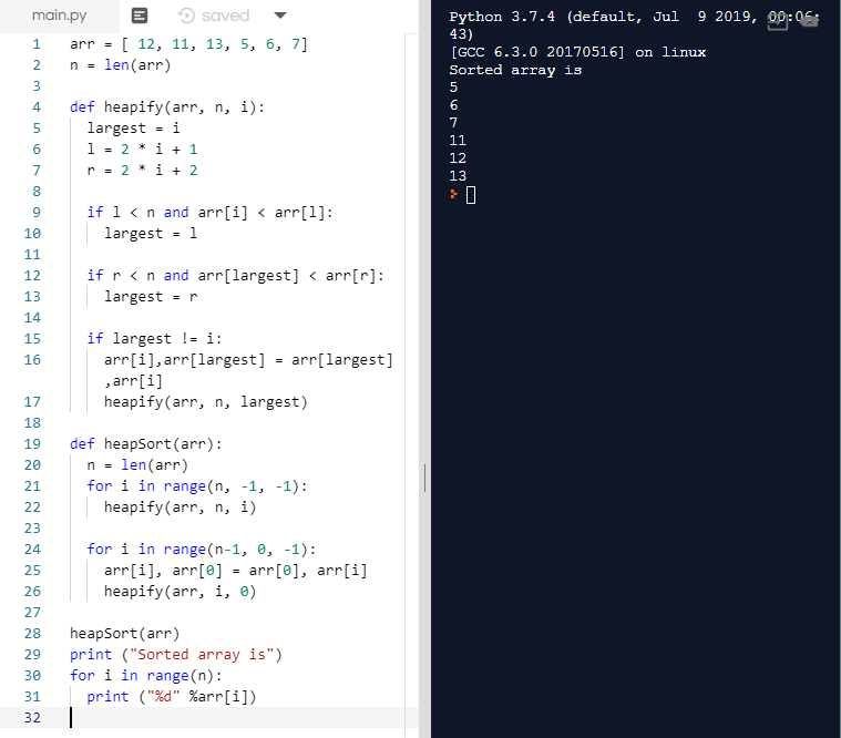 heapSort(arr)