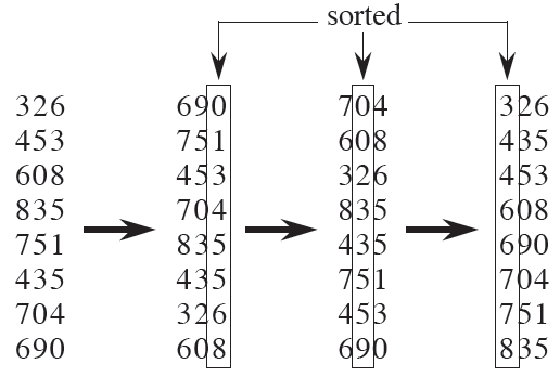 쉽게 설명하자면 특정 데이터의 개수(1이 두 개 있다면 2)를 데이터의 값에 대응하는 위치에 저장한 뒤, 자신의 위치에서 앞에 있던 값을 모두 더한 배열을 만든 뒤, 거기서 데이터가 들어가야 할 위치를 찾아내는 정렬 알고리즘이다.