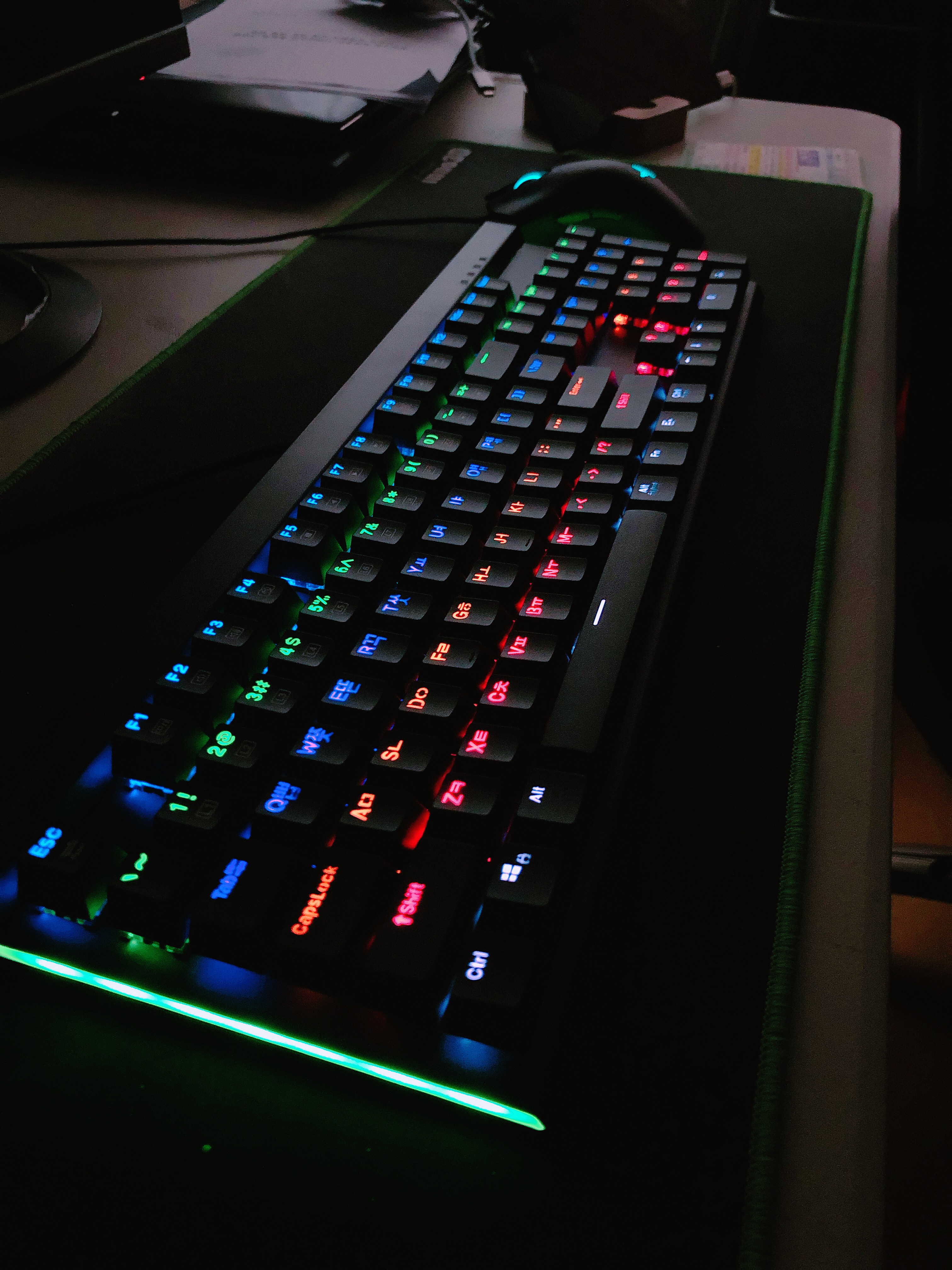 키보드는 저렴한 기계식 키보드 (앱코꺼) 마우스는 애장품 레이져 데스에더 크로마!