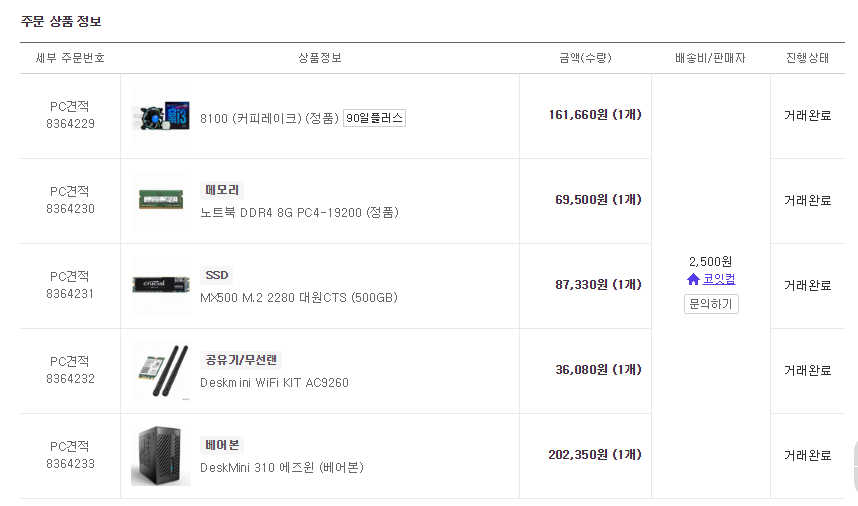 부분적으로 조립된.. 맞다. 내 가산 케이스는 베어본용 케이스로 인텔 커피 레이크용 메인보드 H310이 부착되어있는 모델이다. 그리고 램은 노트북용을 지원한다.