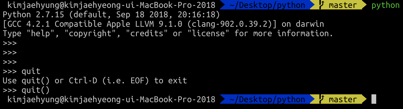 Use quit() or Ctrl - D. 저 두 개 중 아무거나 써서 나오면 된다.