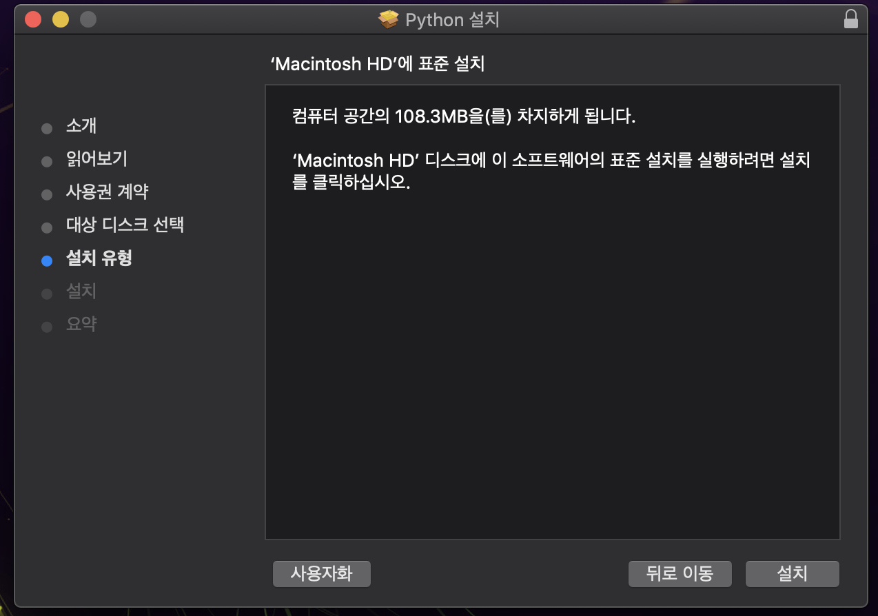 설치가 완료되었다. 닫기를 눌러주자. (설치 시 사용된. pkg는 지워도 된다)