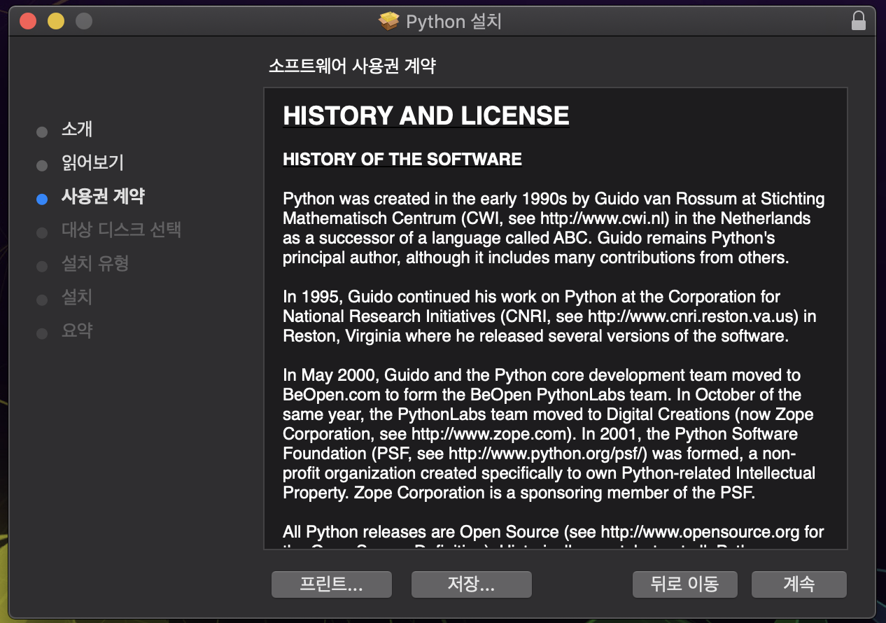 사용권 계약을 눈으로 숙지할 필요,,,,는 없고 얼른 계속을 누르자.