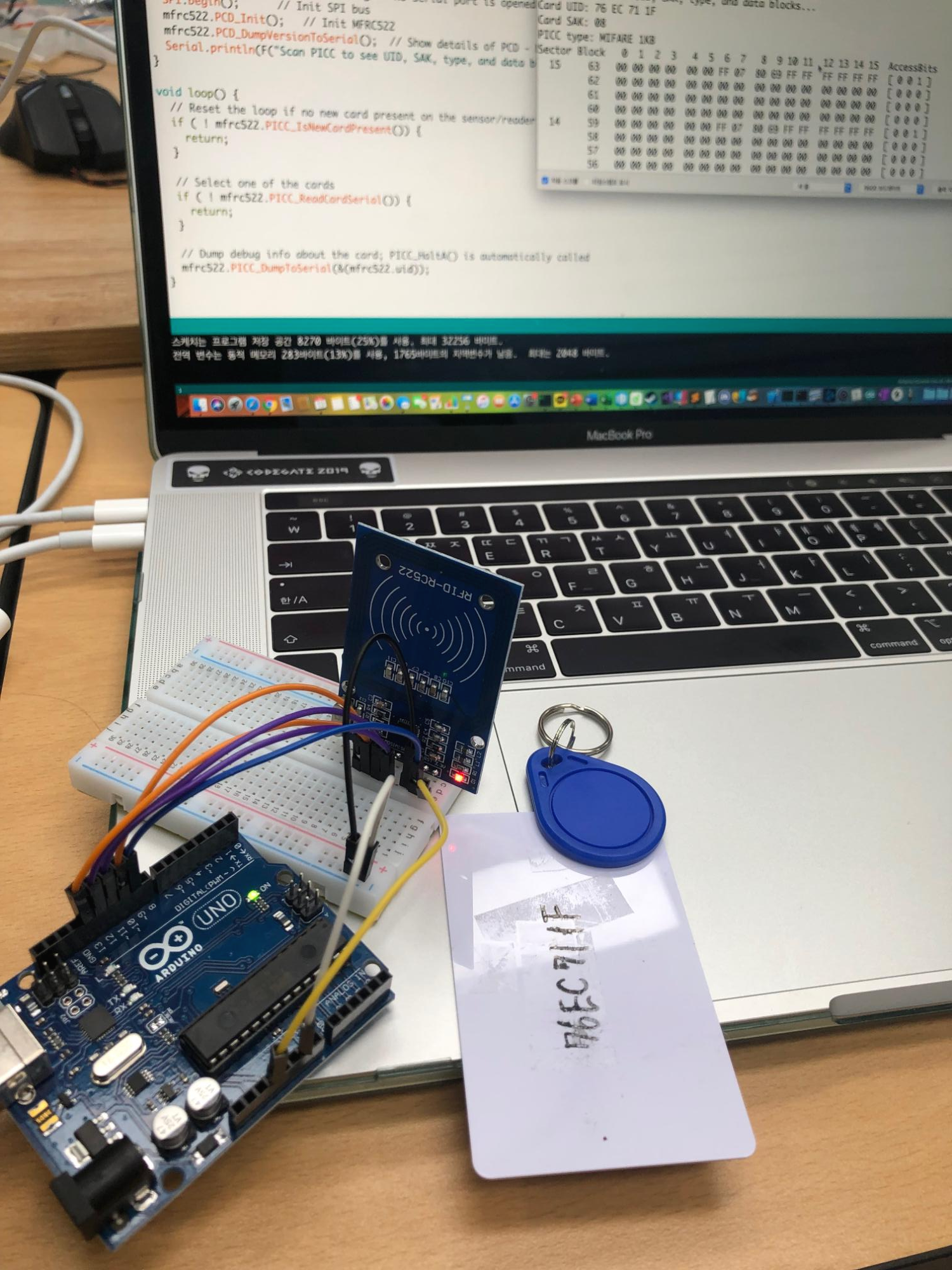 RFID 카드 태깅했을때 카드 정보를 알아내는 실습이다.