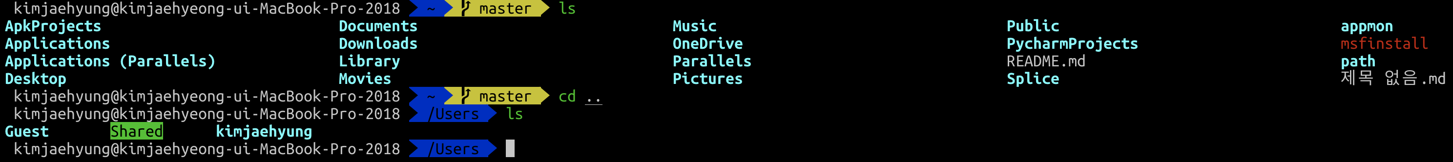 보다시피 홈 디렉토리의 하위 디렉토리로 이동한 것을 볼 수 있다.