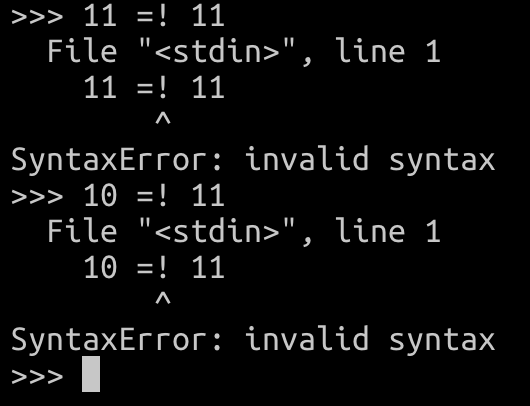 라고 생각할 수 있지만, 안타깝게도 이 기호는 대입을 위해서만 예약되어있어 파이썬에서 문법 오류가 된다.