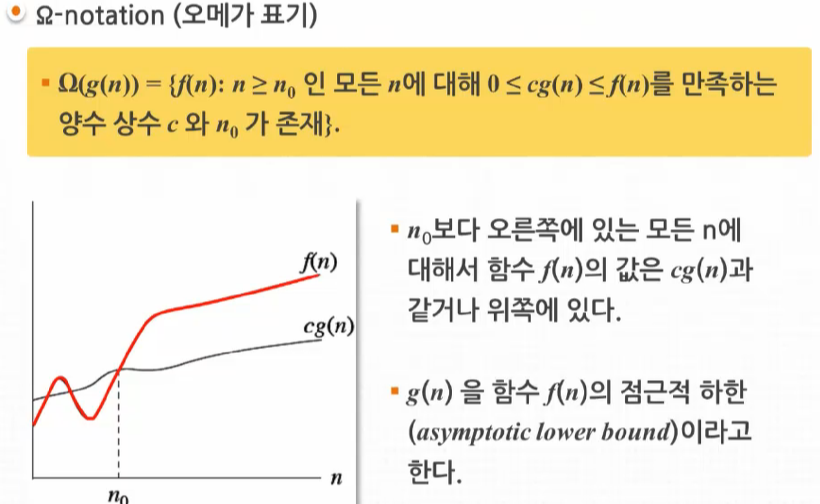 예를 들어 입력 자료의 크기 n에 대하여 O(n)의 시간복잡도를 가진 알고리즘은 대략 크기 n에 비례하는 수의 연산을 수행한다고 보면 된다.