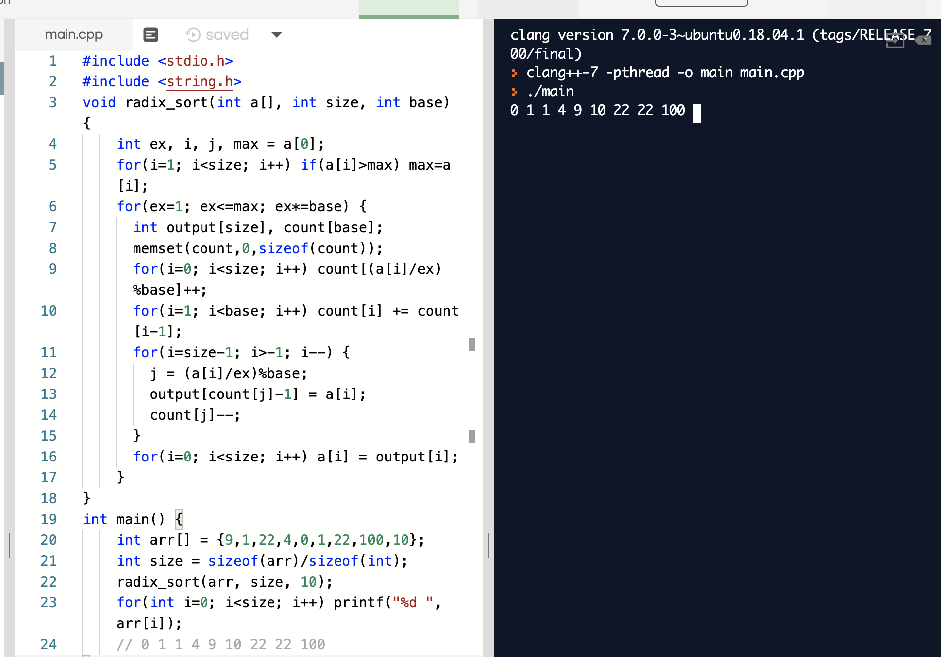 그래서 코드를 짜면 퀵 정렬보다도 훨씬 빠른 속도로 정수를 정렬할 수 있다.
