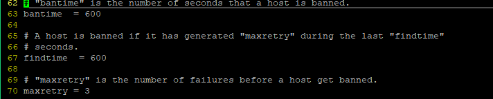 vi /etc/fail2ban/jail.conf