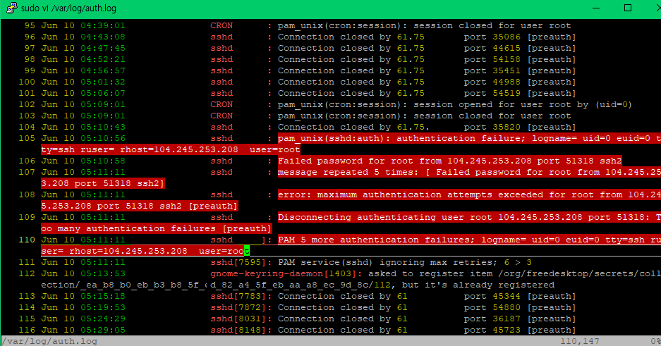 Fail2ban 로그 침입시도 아이피 확인 - 제타위키